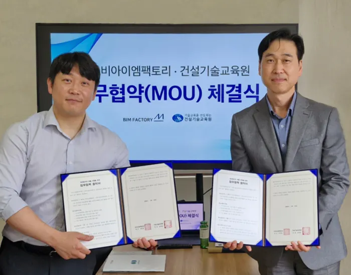 [대한경제=정석한 기자] 건설기술교육원(원장 권대철)은 BIM 등 스마트건설 분야에서 발전을 거듭하고 있는 유망기업 ㈜비아이엠팩토리, ㈜두올테크, ㈜루미너스펄스, ㈜스페이스에이디, ㈜연우에이치티 5개사와 업무협약을 체결했다고 20일 밝혔다.