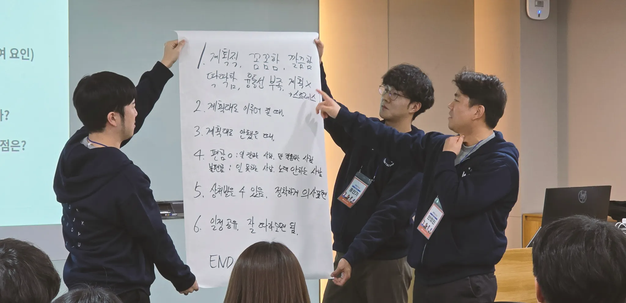 본사와 현장에서, 또 새로이 합류한 동료들까지. 정성스레 준비한 1분 자기소개 PPT에는 각자의 일상과 꿈, 그리고 팀팩토리와 함께 그려가는 미래가 담겨있었습니다. 누군가는 취미 이야기로, 또 누군가는 입사 후 달라진 점을 이야기하면서, 우리는 서로에 대해 조금 더 알아가기 시작했습니다.