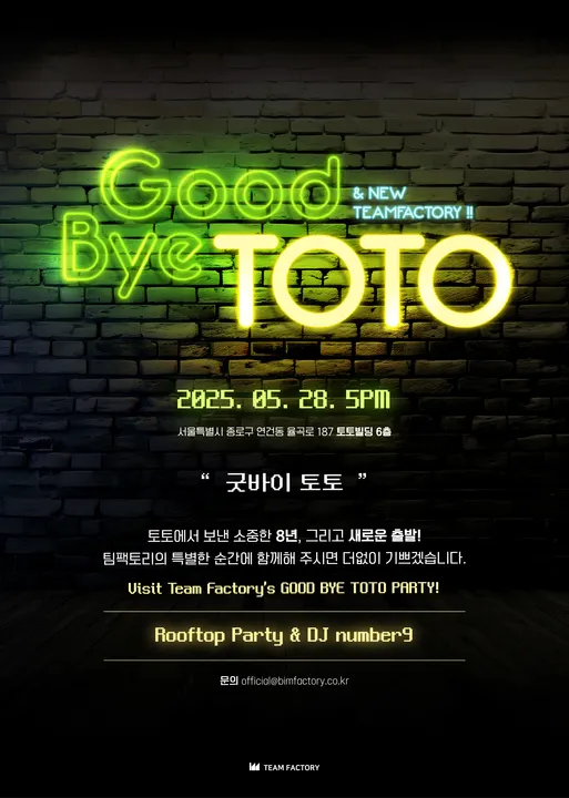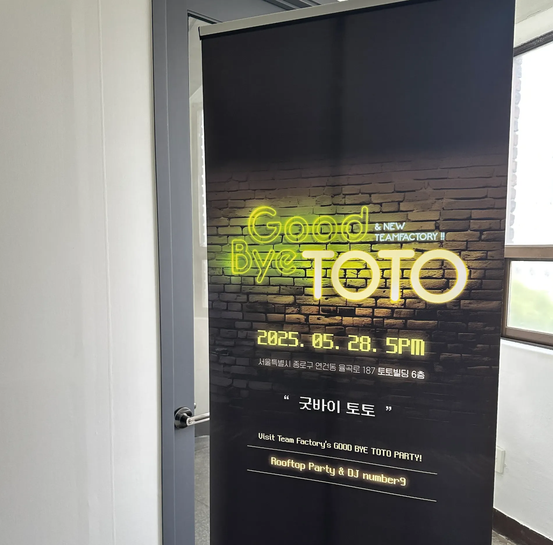 오랫동안 우리의 터전이었던 토토빌딩을 떠나 새로운 공간으로 이전하는 시점에서 팀팩토리의 방식으로 이 전환점을 의미 있게 만들고 싶었어요. 그래서 기획한 것이 바로 '굿바이 토토' 파티였어요.