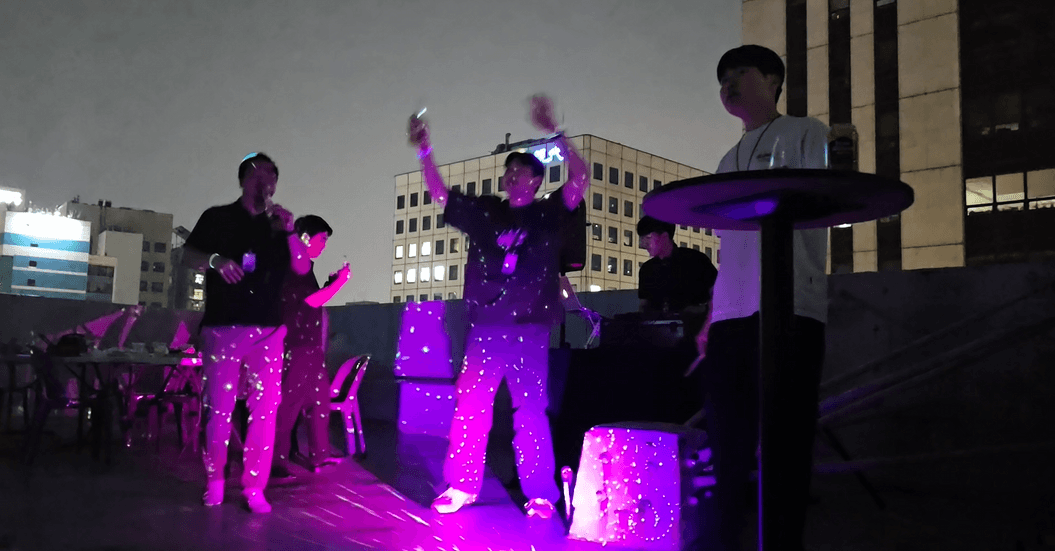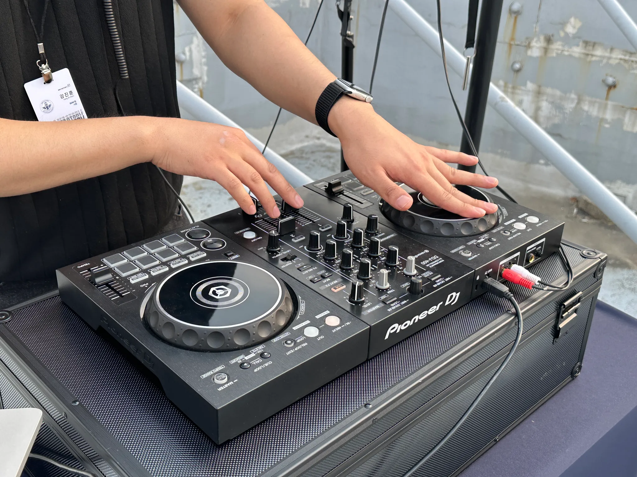 한켠에서는 디제잉 타임이 진행되고 있었는데요. 디제잉을 맡은 분은 다름 아닌 진훈님이었답니다! 평소 취미로 하신다고 들었는데, 직접 보니까 정말 멋있더라고요. 화려한 패드 위에서 멈추지 않는 손을 보면서 함께 일했던 동료의 새로운 모습을 발견하는 정말 귀한 시간이었어요.
