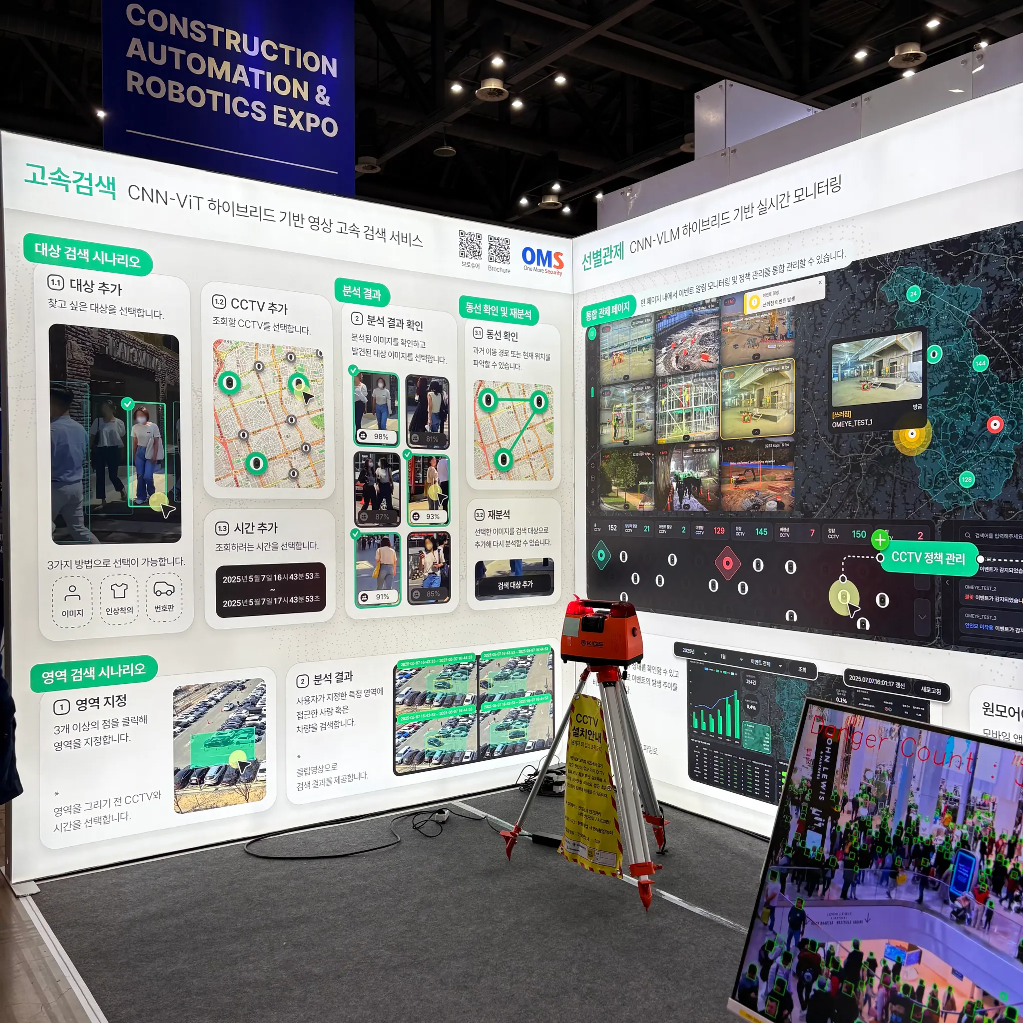 OMS의 지능형 영상 분석(CCTV) 기술도 실용적이었습니다. 작업자의 안전모 착용 여부나 위험 구역 접근을 실시간으로 감지해서 알려준다고 하더군요. 관리자가 현장을 일일이 순회하지 않아도 안전 관리가 가능하다는 점에서 의미가 있었어요.