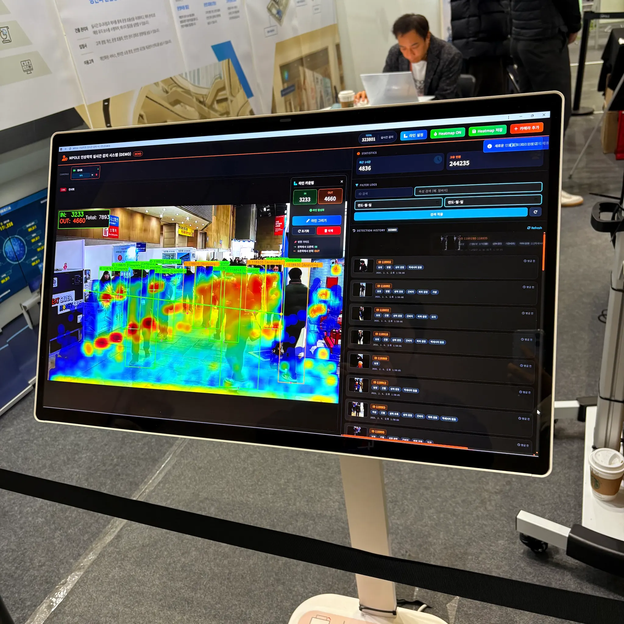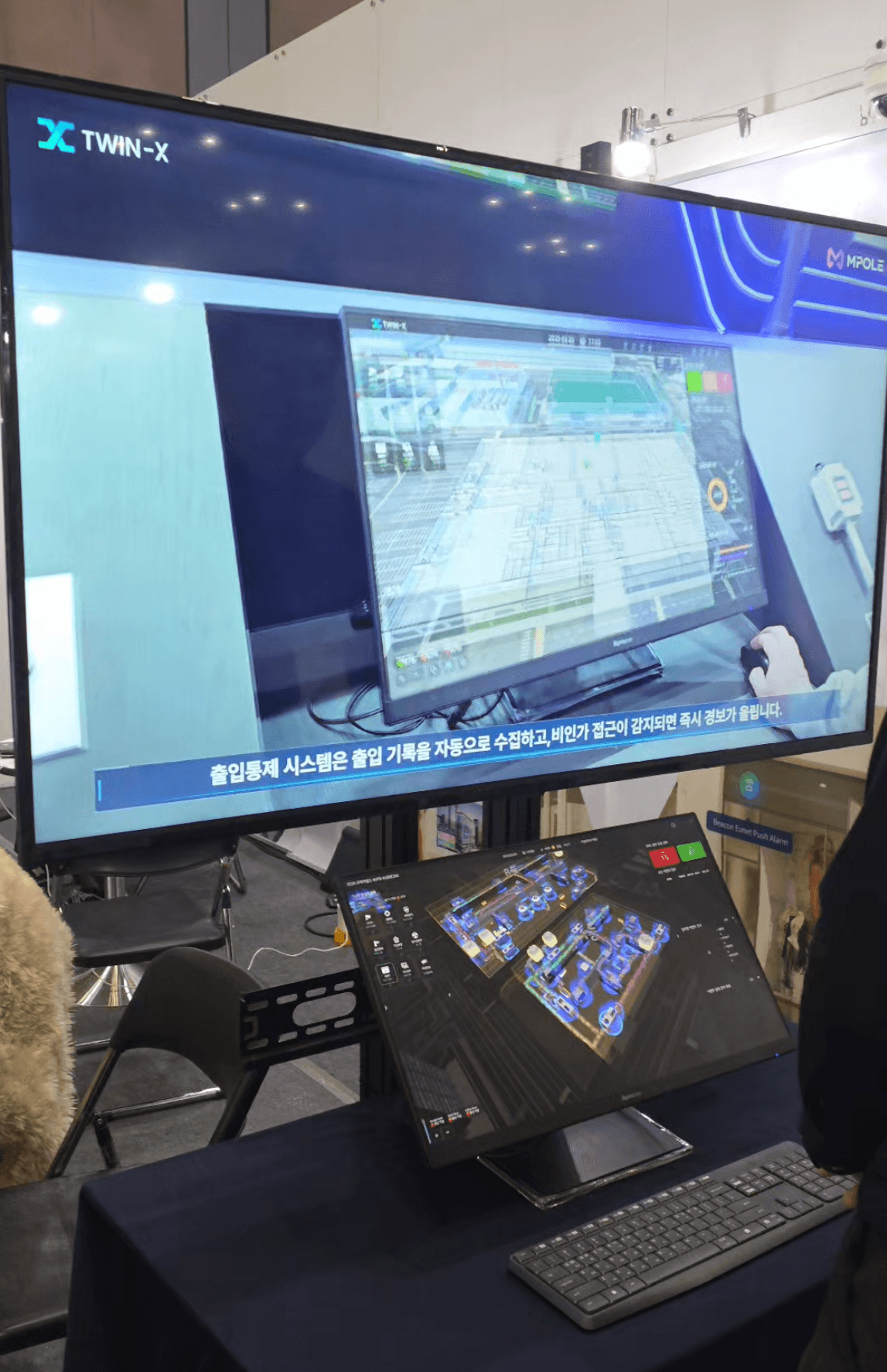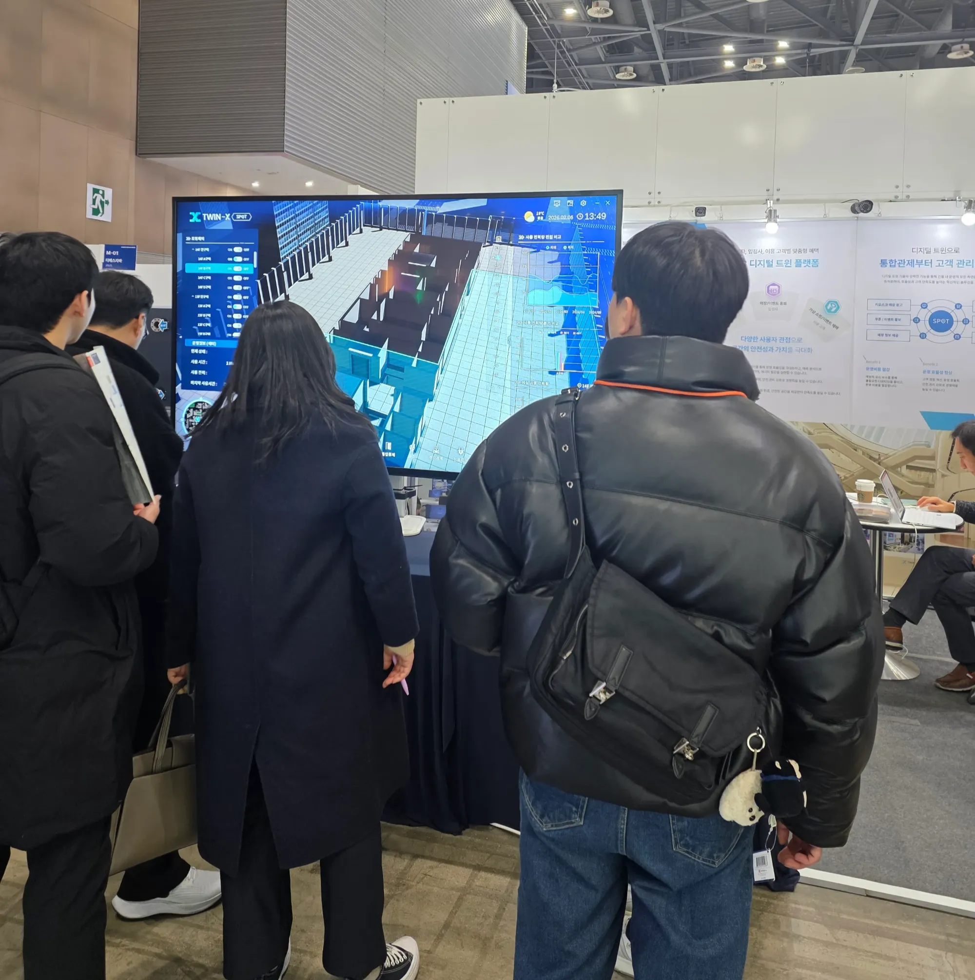 TWIN-X에서는 건물 내부의 에너지 사용량과 센서 데이터를 3D로 시각화해 관리하는 디지털 트윈 기술을 선보였어요. 단순히 모니터링하는 것을 넘어서, 히트맵(Heatmap)을 통해 사람들의 동선을 분석하고 위험 요소를 사전에 감지하는 기능까지 구현되어 있었습니다.