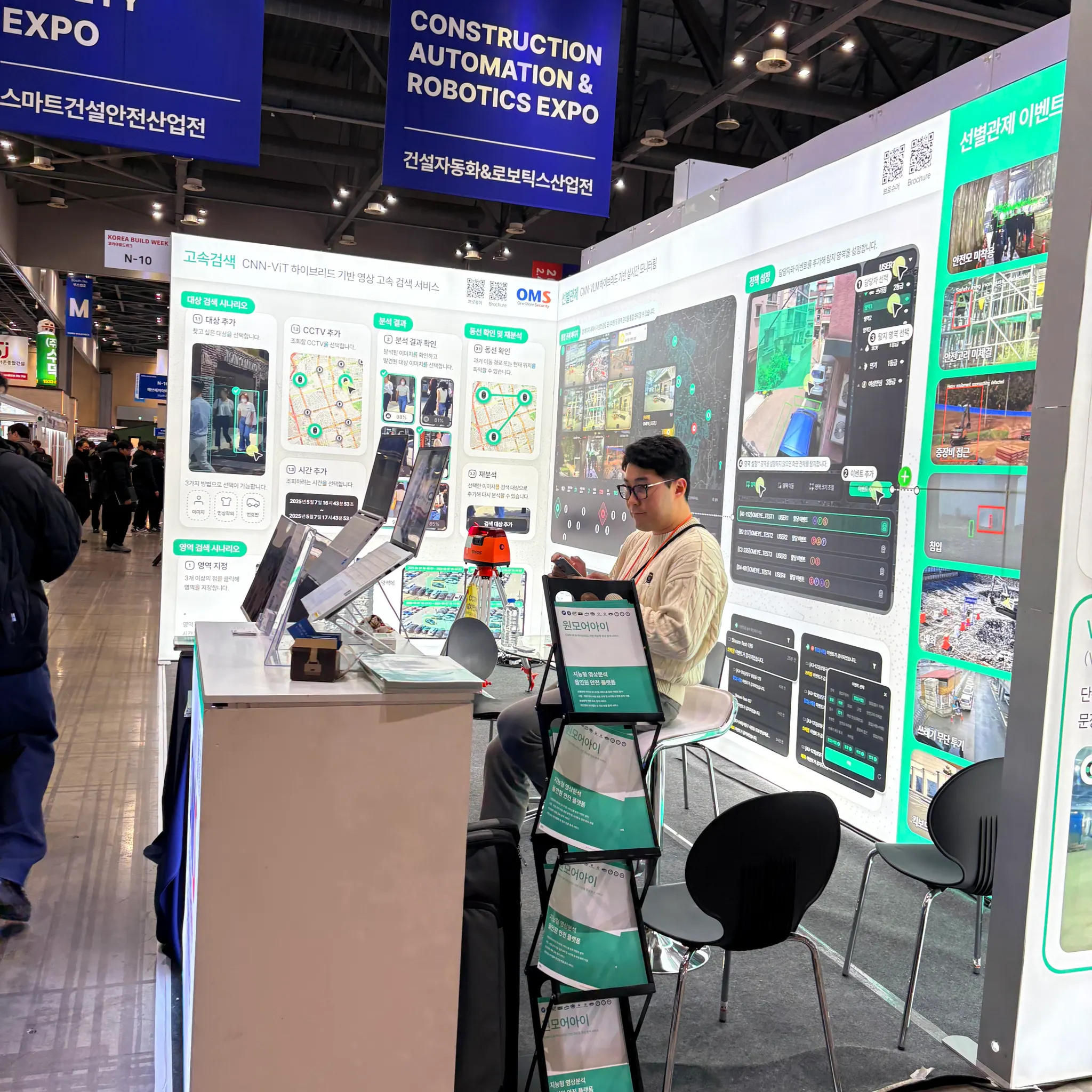 메이사(Meissa)와 OMS 부스에서는 기술이 어떻게 '안전'과 '효율' 을 동시에 잡을 수 있는지 확인할 수 있었어요. 생성형 AI 기반 현장 기록 자동화 기술은 복잡한 현장 관리 업무를 획기적으로 줄여줄 수 있을 것으로 보였어요. 일일보고서나 각종 현장 기록 업무에 소요되는 시간을 상당 부분 절감할 수 있을 것 같았습니다.