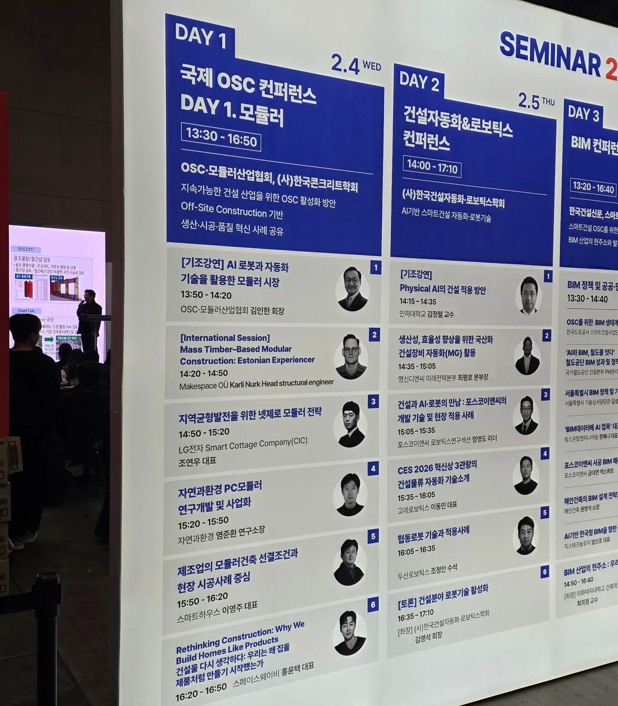 CES에서 현대의 발표로 핫해진 'Physical AI’ 의 건설 적용 방안이나 '모듈러 건축 전략' 같은 주제들은 현재 우리 업계가 고민하고 있는 주제들을 다루고 있어서 더욱 흥미로웠습니다. 모듈러 관련 R&D도 비아이엠팩토리 내부에서 진행 중인데 최전방의 이야기를 들을 수 있어서 연구에도 도움이 될 거 같습니다.