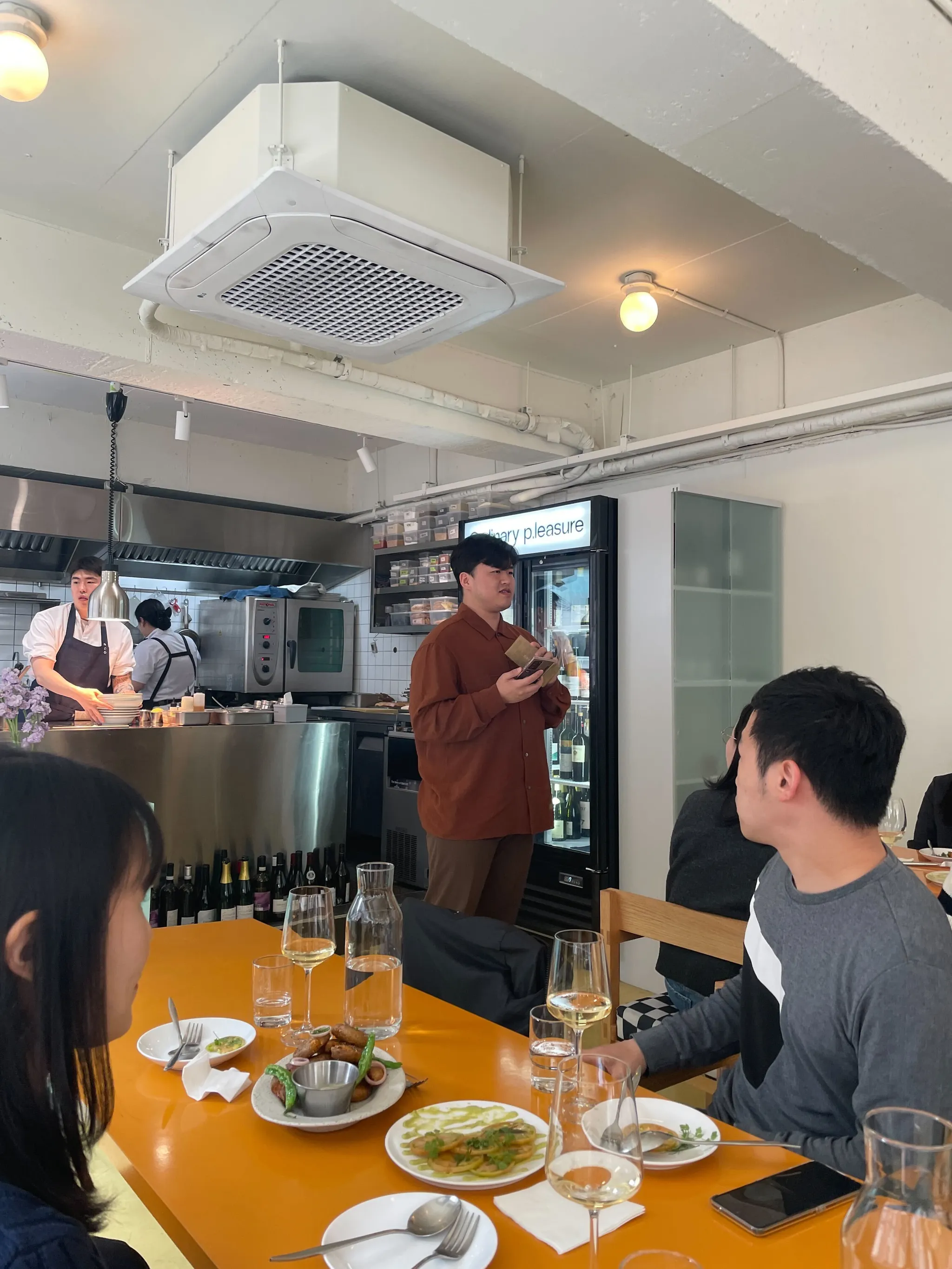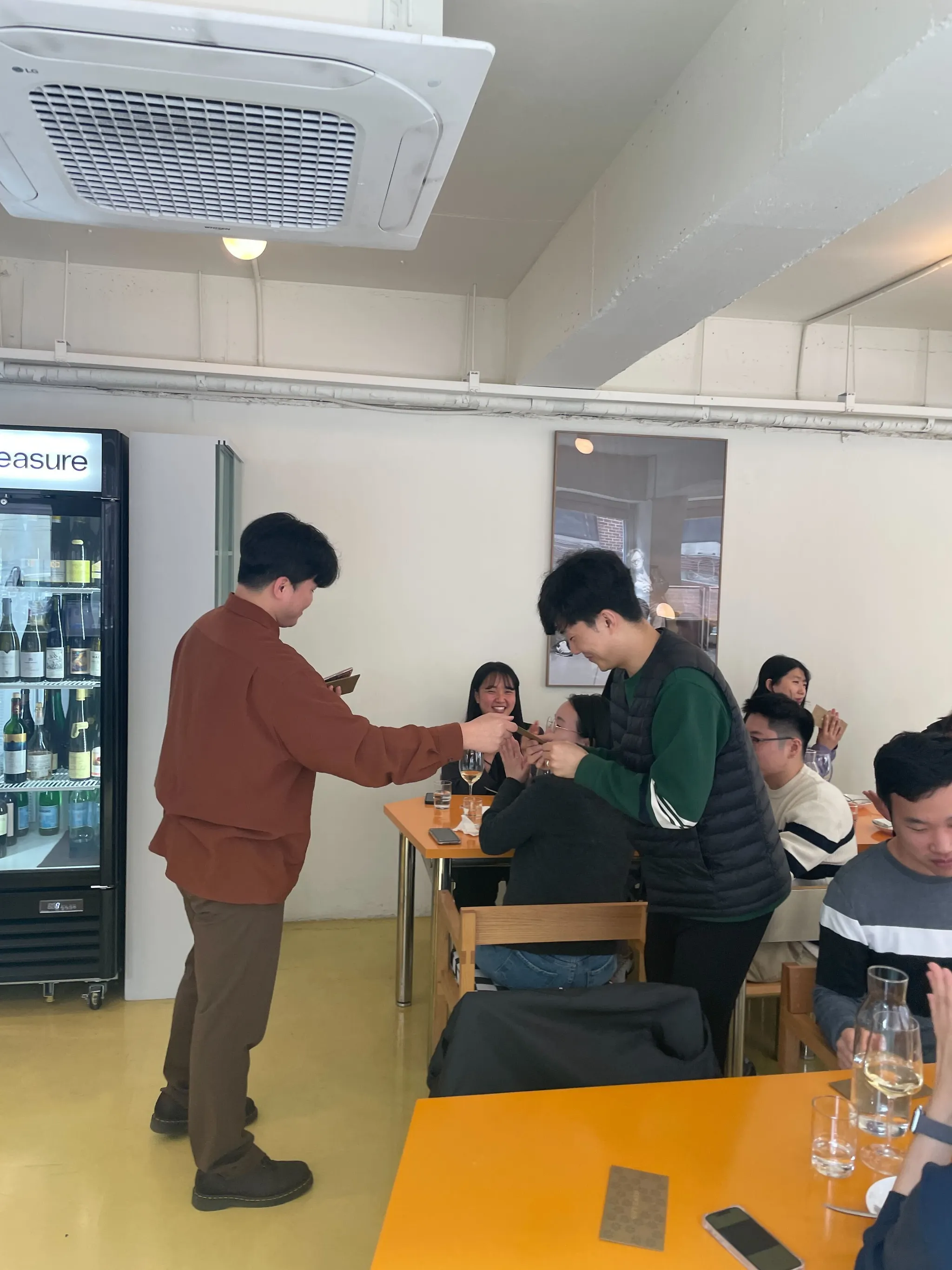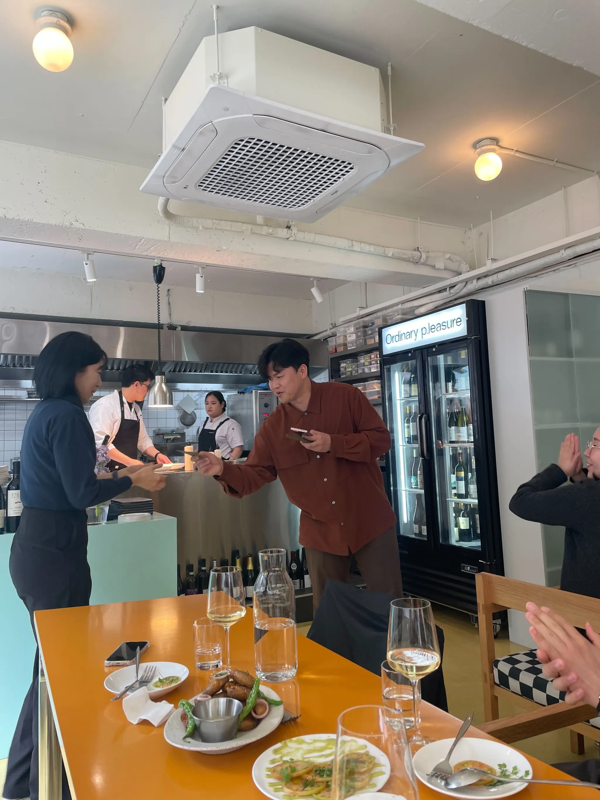논현역의 <오디너리플레져> 에서 식사와 1분기 무지각자 시상이 있었습니다. 요 오디너리플레져는 와인과 함께 어울리는 음식을 런치엔 코스로, 디너엔 단품으로 제공해주는 곳인데요. 팀팩토리 팀원 분의 친척께서 운영하시는 곳이라 안가볼 수가 없어서 팩토리데이 식사장소로 결정했습니다.