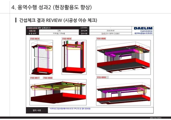 1차 샵 도면 기반 모델 구축 후, 실무자와 BIM팀과의 주기적 검토회의를 통해 발생 될 혹은 잘못된 작업을 방지합니다.