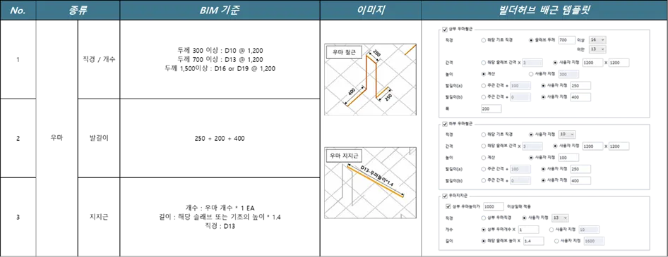 BIM 시공용 철근 기준 수립 후 빌더허브 배근 템플릿 반영한 사례