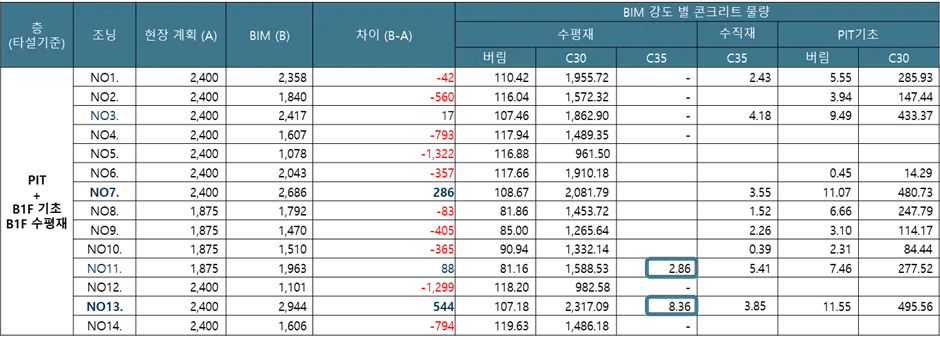 2D 산출서와 BIM 산출서 비교 및 분석 사례