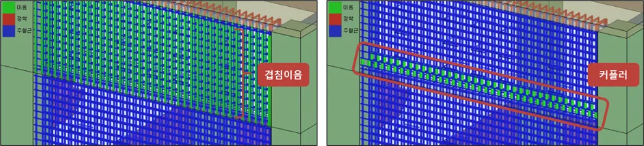 또 하나 좋은 점은 현장 상황에 따른 변경 사항을 빠르게 반영할 수 있다는 거예요. 예를 들어, 파일이 망가져서 기초를 더 크게 해야 한다거나, 띠장 때문에 지하외벽 수직 철근에 커플러를 써야 하는 경우 등 현장에서 발생하는 다양한 상황을 모델에 바로 반영하고 비용이 어떻게 바뀌는지 즉시 확인할 수 있죠.