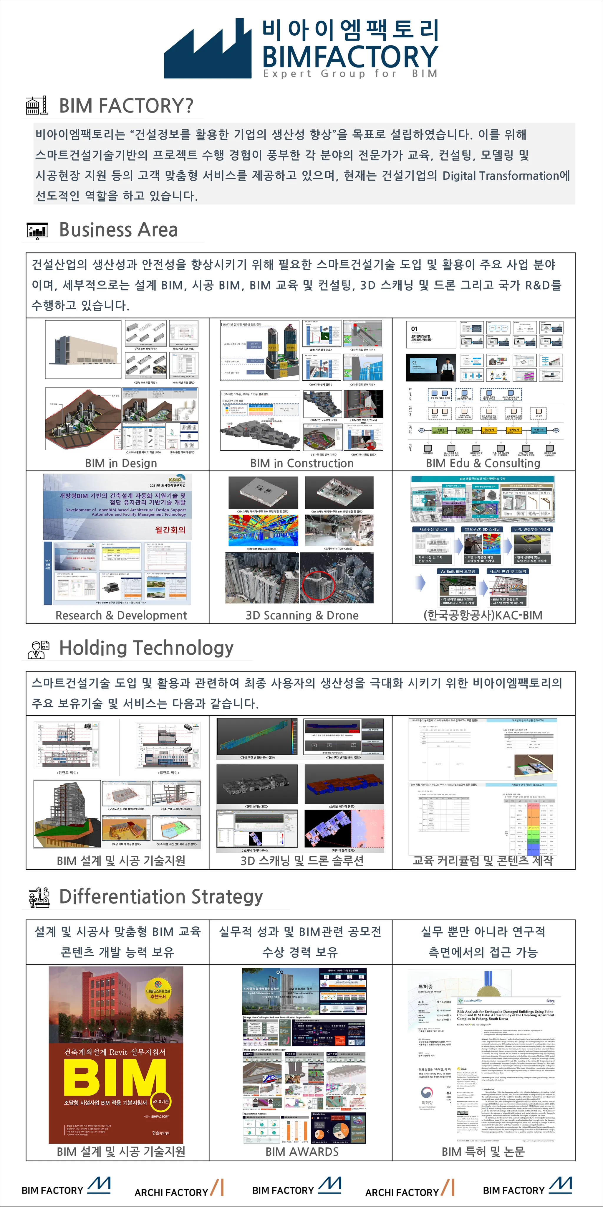 안녕하세요. 비아이엠팩토리의 콘텐츠 크리에이터 홍인기입니다! 이번에 수원컨벤션센터에서 [2022 국토교통기술대전] 박람회가 열리는데 그 곳에 저희 비아이엠팩토리도 함께 참여하게 되어 그 소식을 전하고자 해요. 저희 이름으로 출전한 것은 아니고 삼육대학교의 박은수 교수님, 폴리텍대학교의 이안용 교수님, 비아이엠팩토리의 서희창 대표님이 함께 연구하신 성과와 우리 비아이엠팩토리의 BIM 업무 성과와 제가 맡고 있는 Con-Kit에 대하여 삼육대학교 부스에서 함께 참여하게 되었어요.