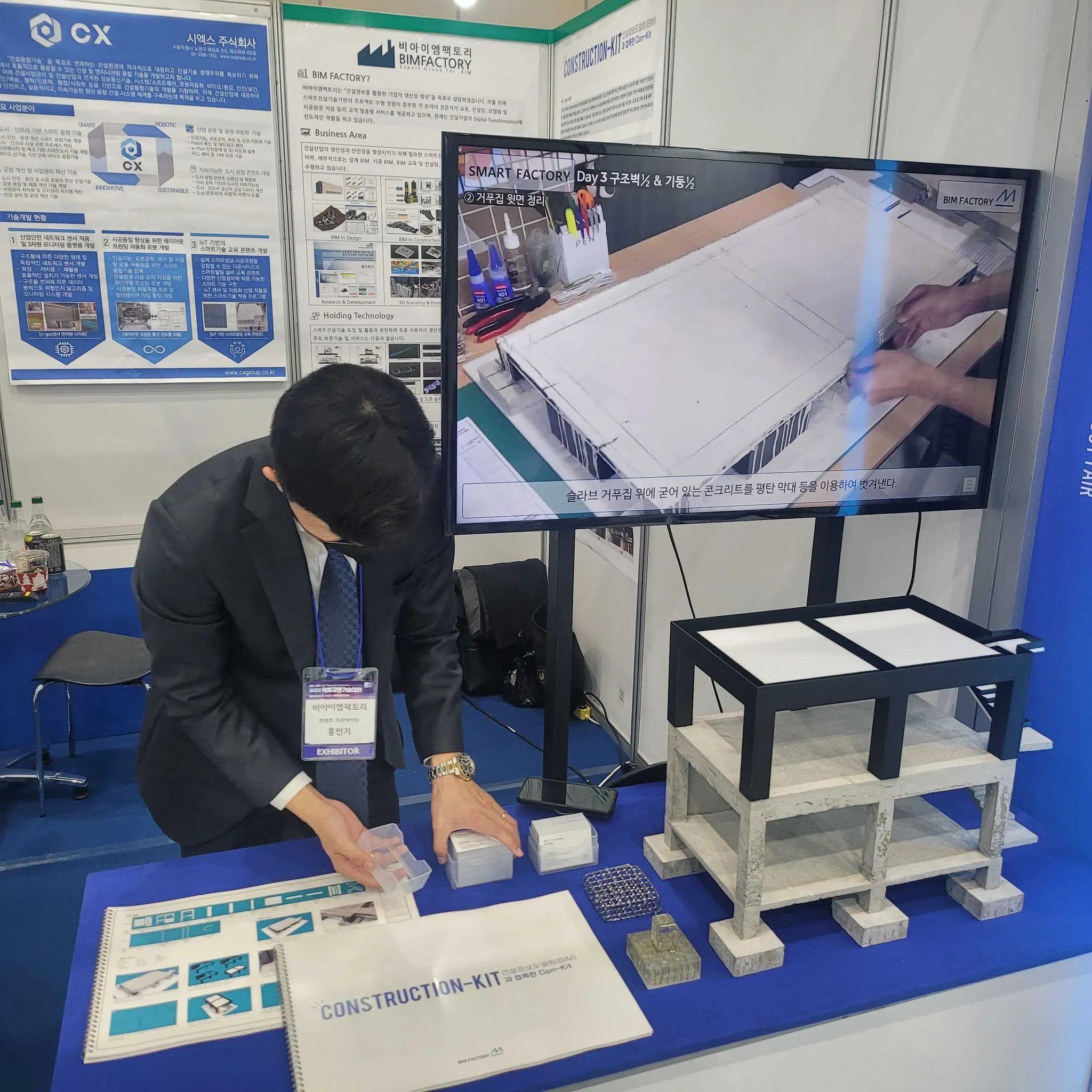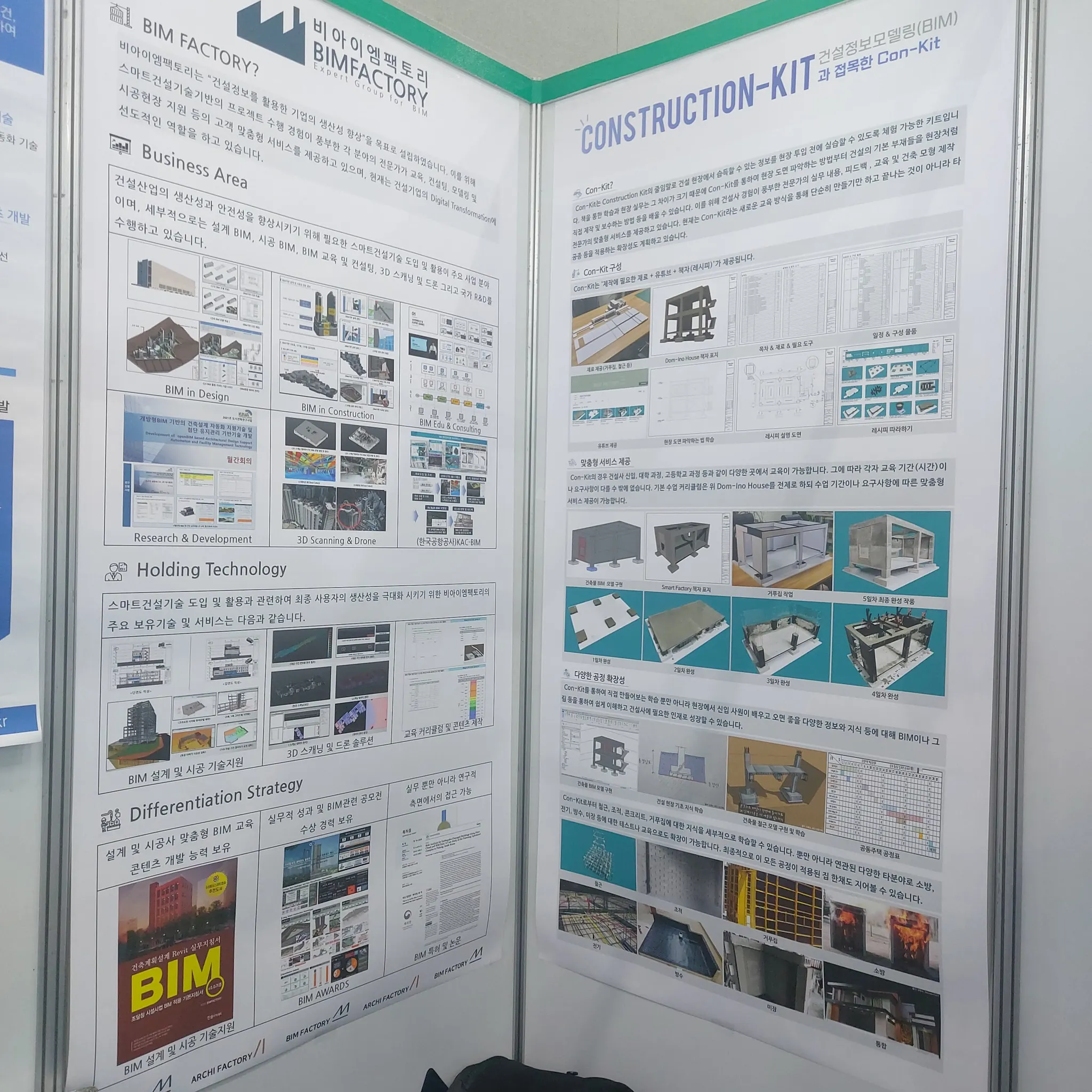 부스 우측에 저희 BIMFACTORY와 Construction-Kit(Con-Kit) 작품과 패널을 전시하였고