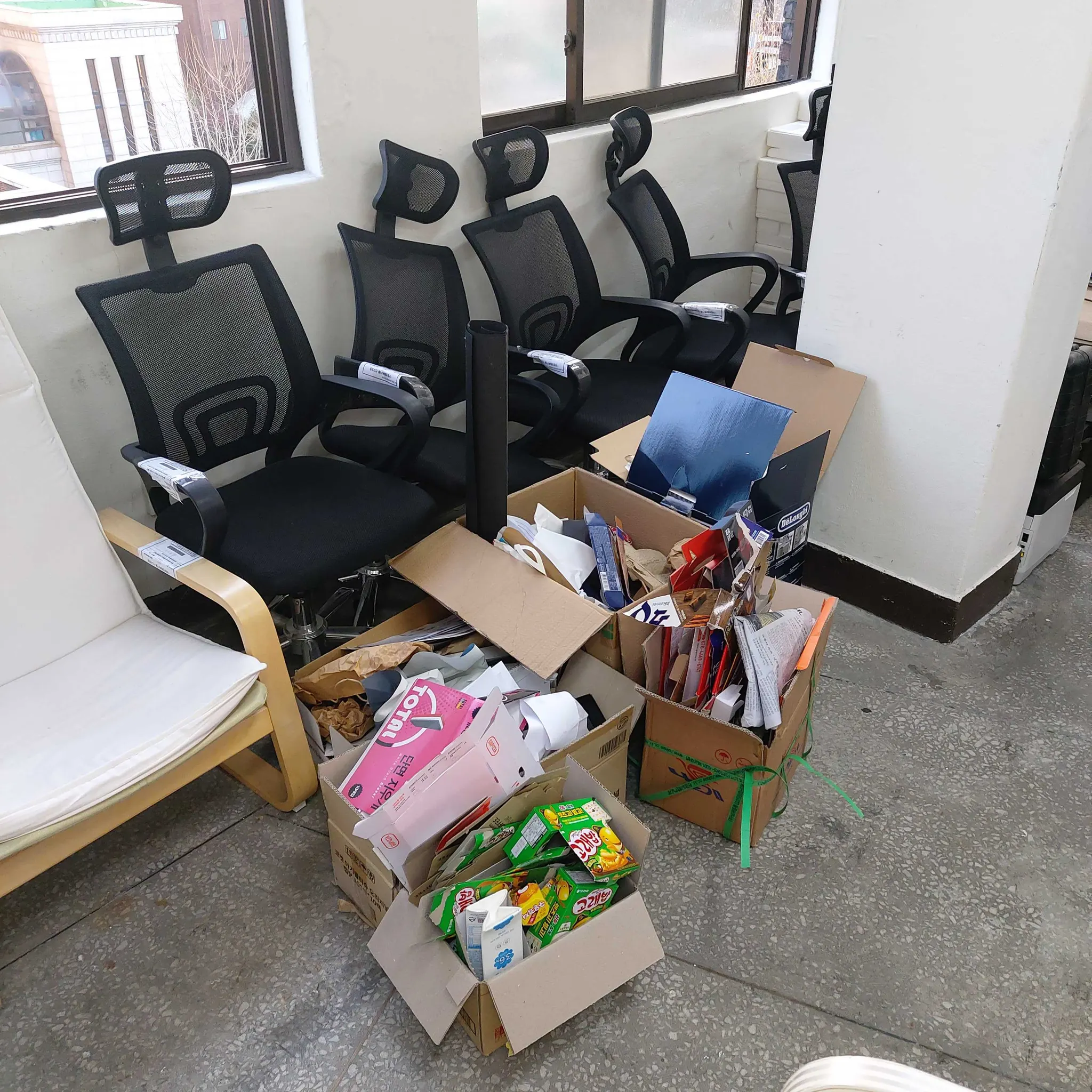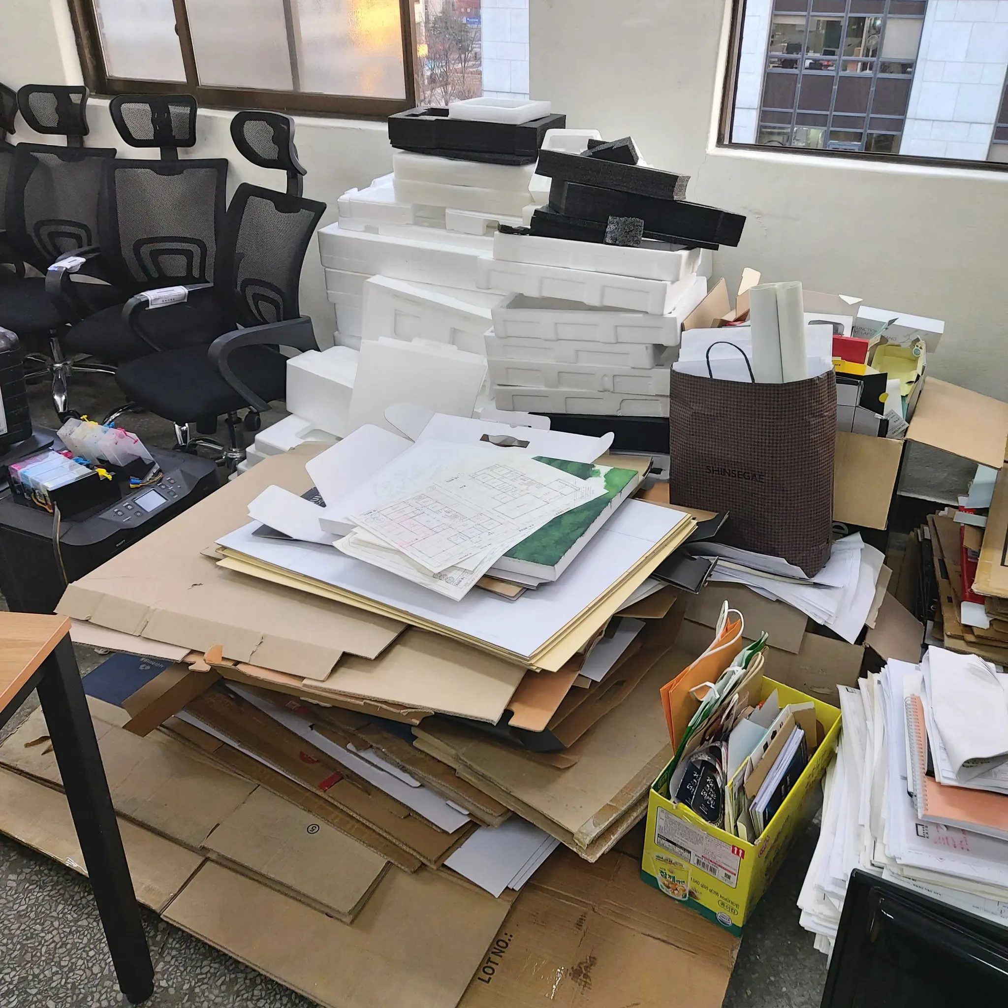 수년 동안 치워지지 않았던 사무실 내의 수많은 쓰레기를 분리수거하고, 이삿짐 사다리 차까지 불러서 모두 폐기하는데 수 일이 걸렸죠 ㅜㅜ