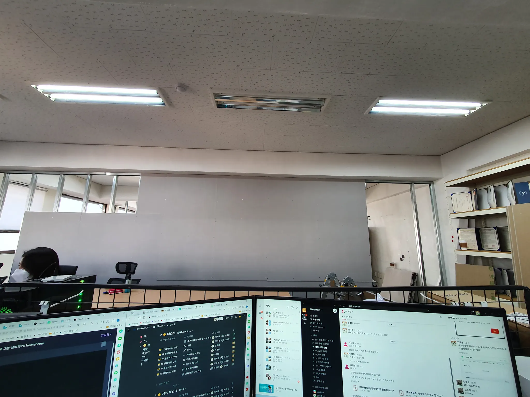 인테리어 공사 작업 현황, 시끄러운 작업 환경 속에서 열심히 업무했던 본사팀 고생 ㅜㅜ
