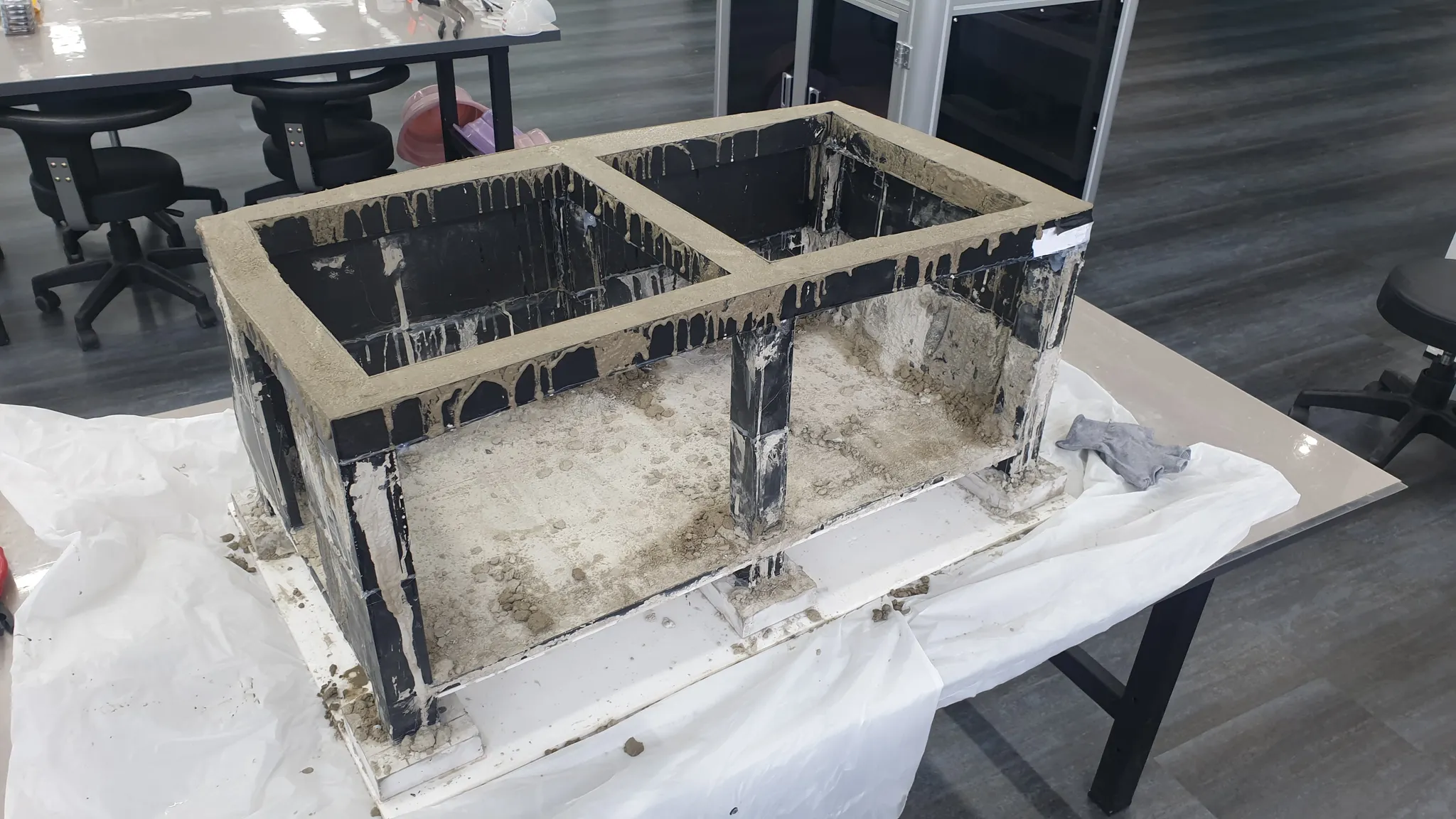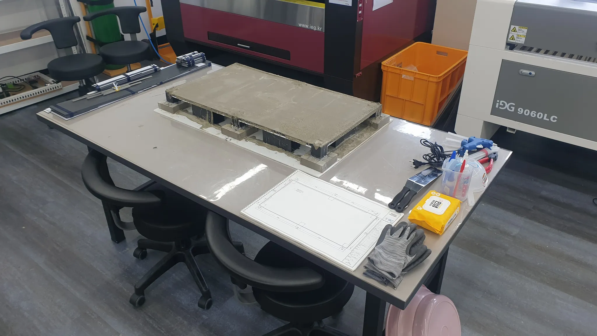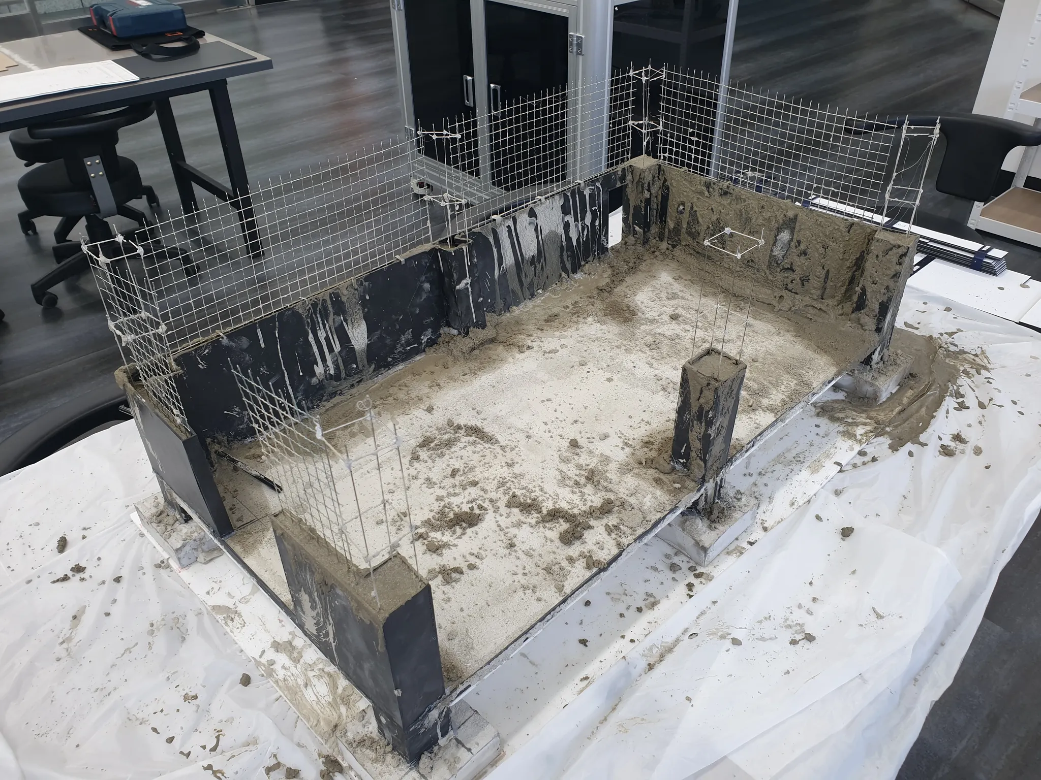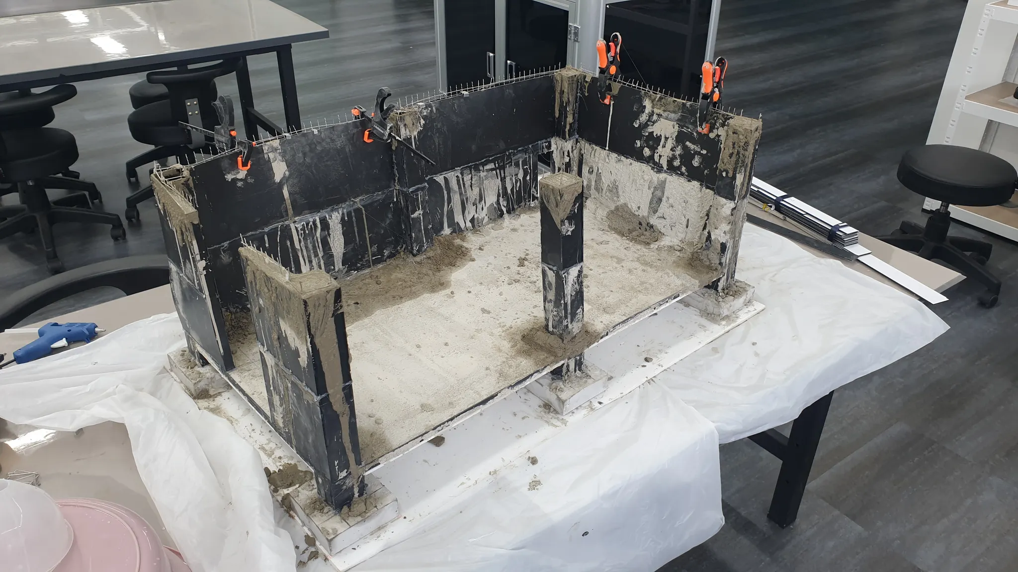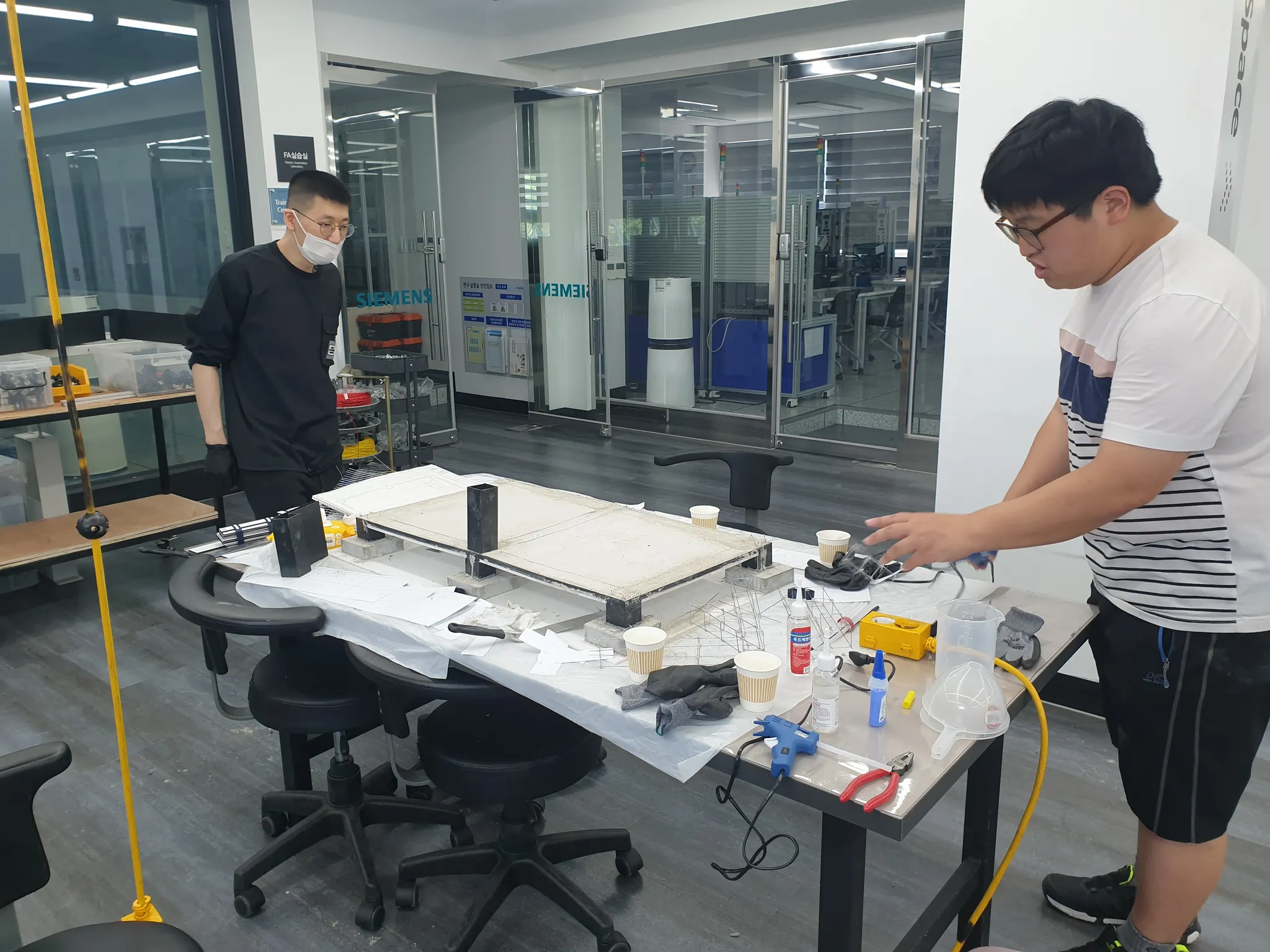 보기보다 벽체와 기둥에 들어가는 콘크리트 양이 어마어마하다보니 배부름 현상을 최소화하기 위해 갖은 수를 썼어요. 이부분도 체험 하는 학생들이 고민하지 않게끔 제작 단계에서부터 고려해야할 사항이에요.