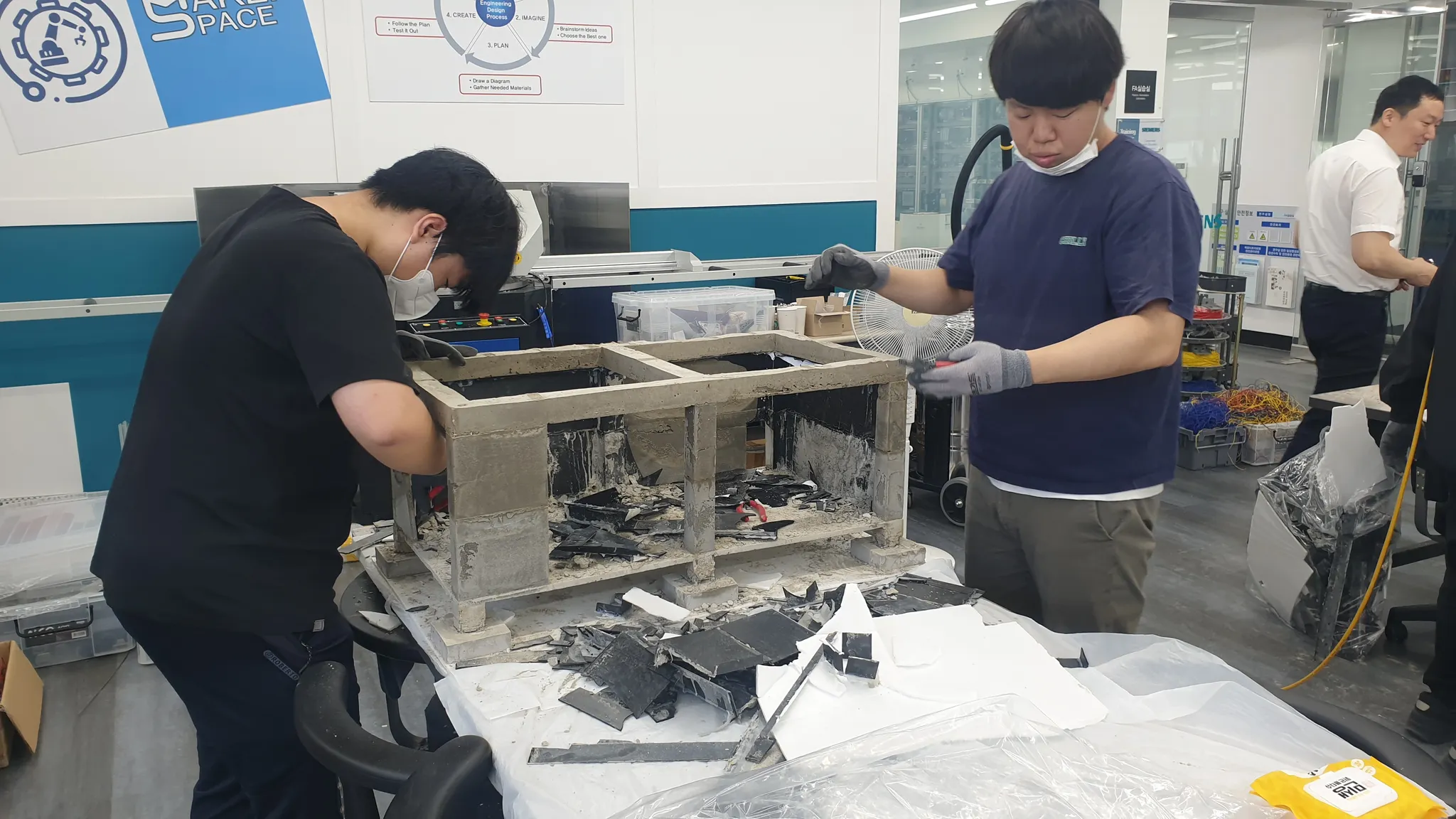 각자들 만든 작품이 훼손되지 않도록 거푸집을 해체해주는 중이에요. 거푸집 양이 어마어마하죠!