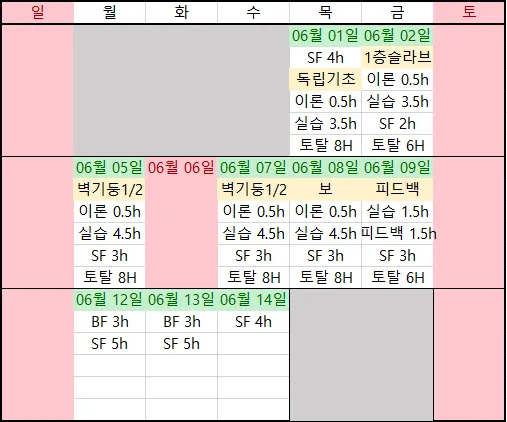 (06/07) 4일차_벽, 기둥 ½ 작업