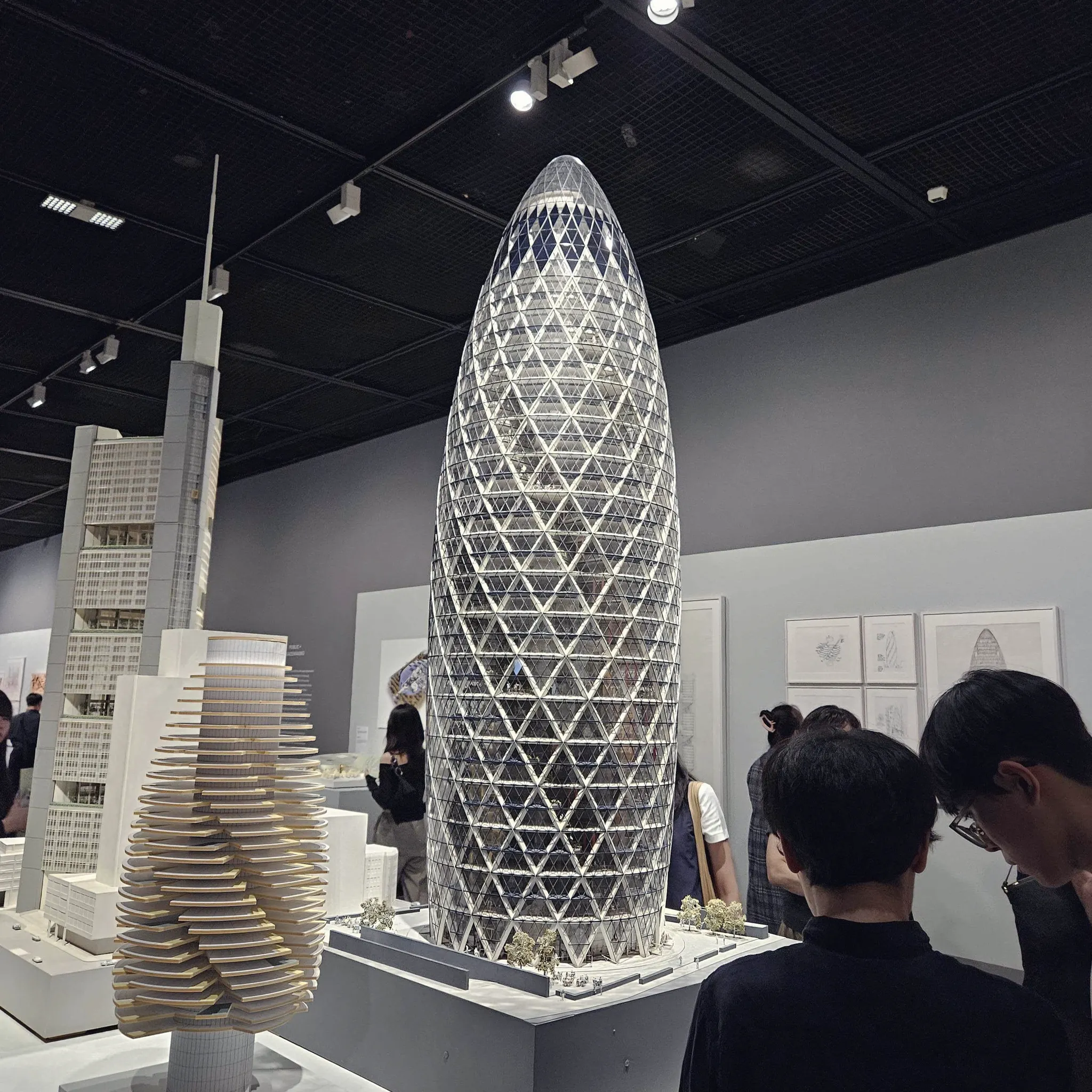 맛있는 점심 식사 후, 서울시립미술관으로 향했습니다. 이번엔 세계적인 건축가 노먼 포스터의 전시를 관람하는 시간이었어요. 전시장에 들어서자마자 모두의 눈이 반짝였죠. 완성된 작품은 물론이고, 포스터의 스케치와 저서까지 가까이에서 볼 수 있어 정말 흥미진진했습니다.