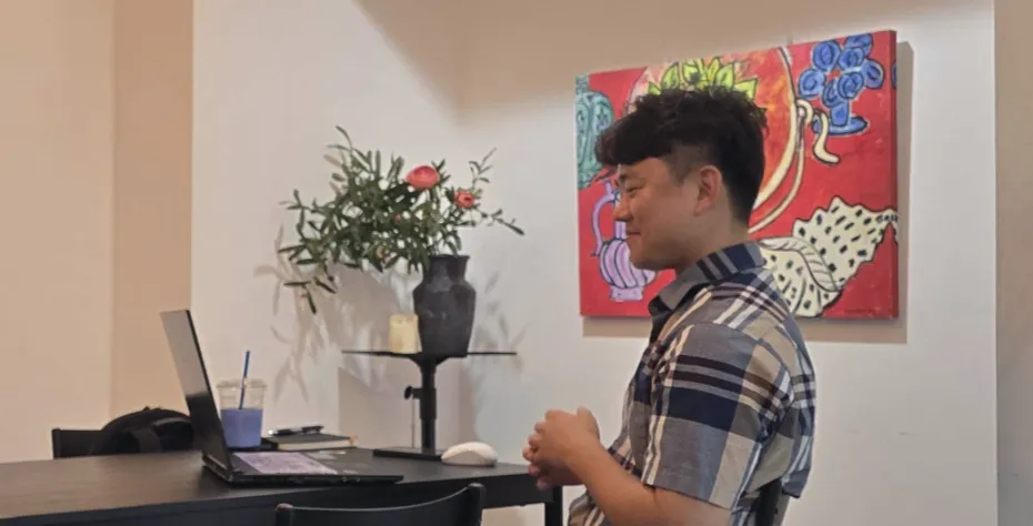 인터뷰 컨텐츠 제작 중, 촬영이 부끄러우신 정민 부장님의 모습…